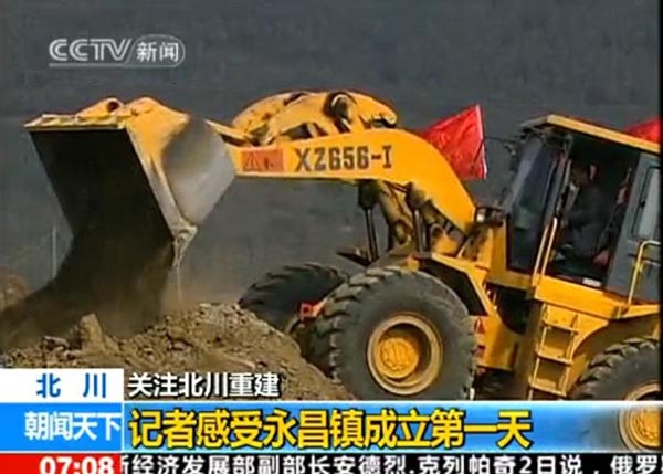 央視播報(bào)---廈裝XZ656-Ⅰ裝載機(jī)援建新北川 |