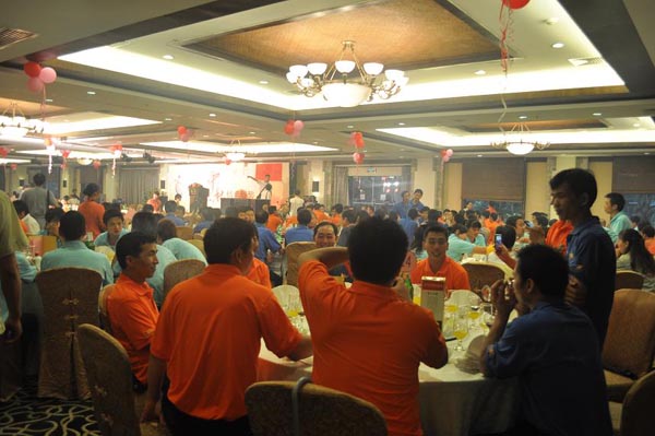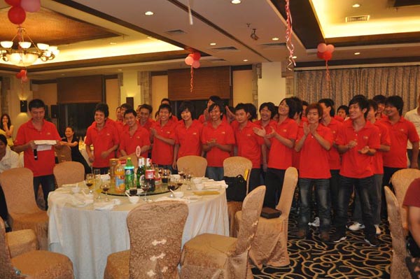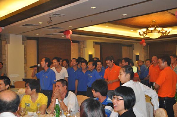 我司每年都會組織全體員工舉行這一活動,而今年恰逢公司新標志的發(fā)布,更是加入許多精彩節(jié)目!不僅有傳統(tǒng)的晚宴、博餅,更是邀請專業(yè)的演出公司表演精彩的節(jié)目,還有員工自行組織的拉歌活動。節(jié)目進行當中,另有抽獎環(huán)節(jié)!總之,就是要讓員工在節(jié)日里紅上加紅,喜上加喜!